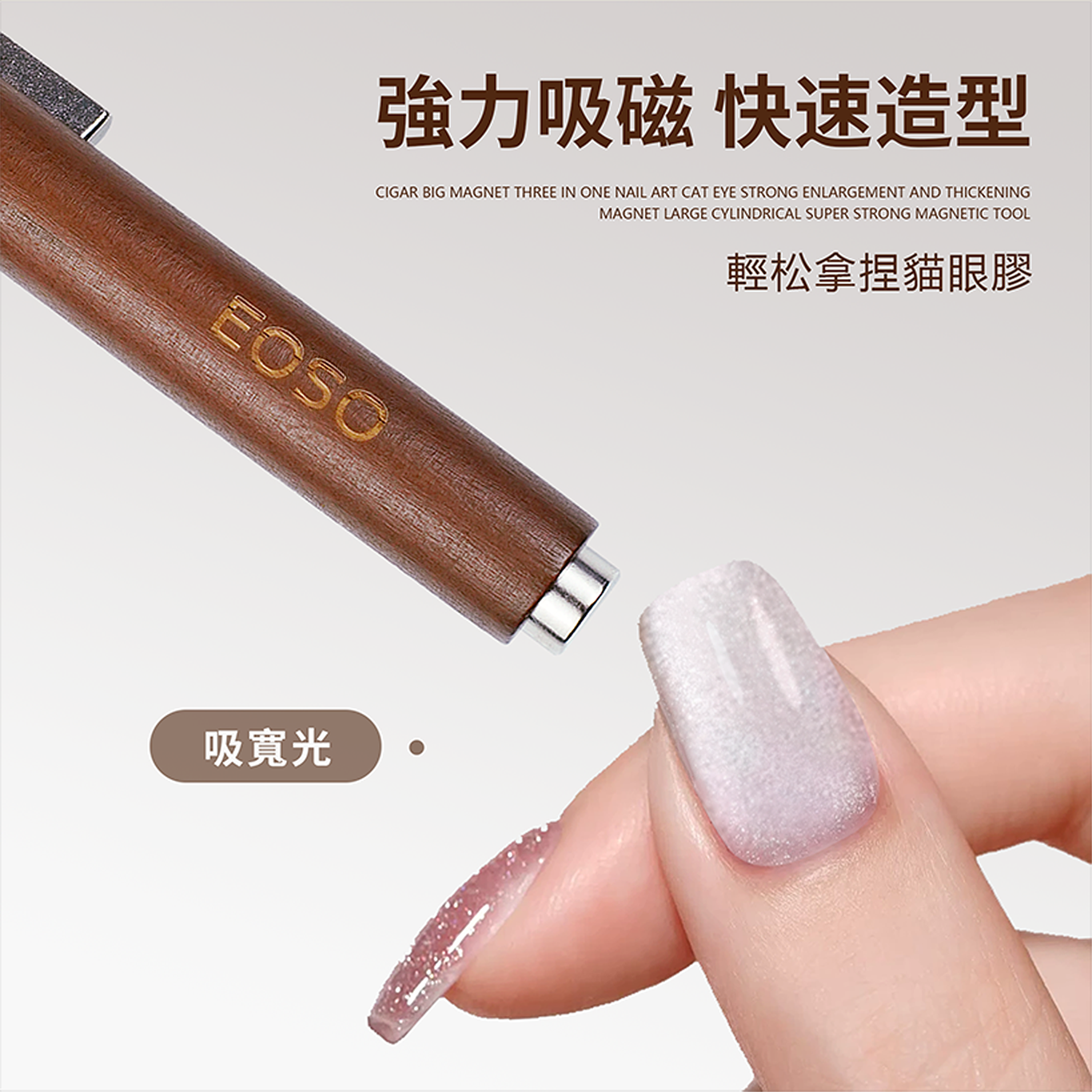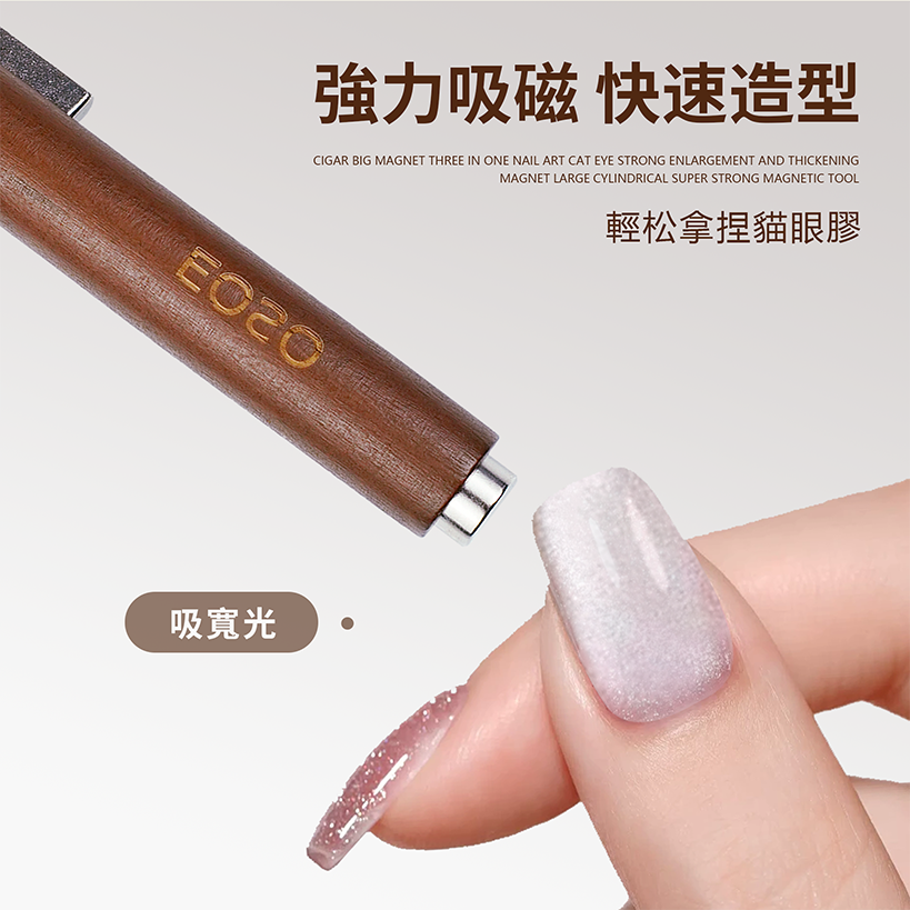 2.用貓眼磁鐵靠近甲面,不要碰到甲面,穩定5秒。吸磁後馬上放進燈裡,建議凝膠燈需365跟405的波長,混燈/UV燈/LED燈。